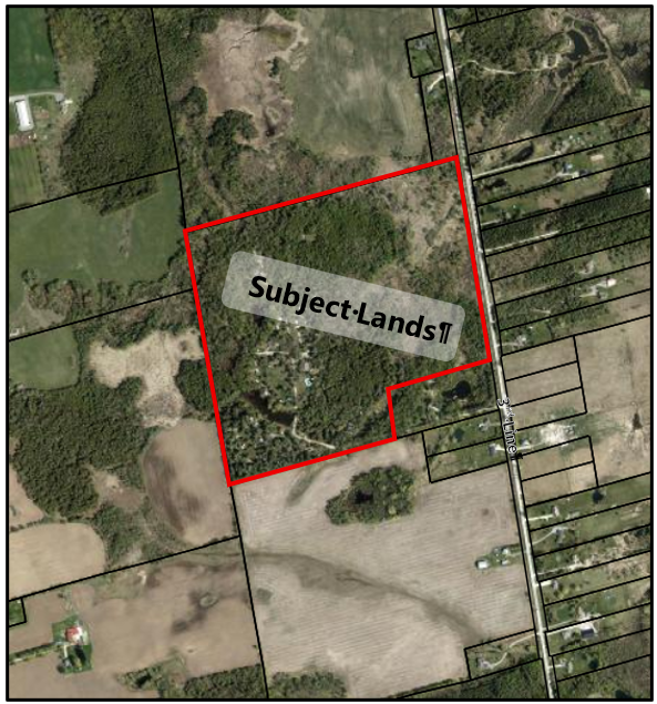 THE PURPOSE AND EFFECT OF THE OFFICIAL PLAN AMENDMENT is to redesignate the subject lands from Countryside Area (Schedule B) and Prime Agricultural (Schedule C) to Community Settlement Area. The redesignation is to permit the establishment of a permanent, year-round, affordable leasehold community consisting of 222 residential units, recreational areas, and a defined commercial area.
